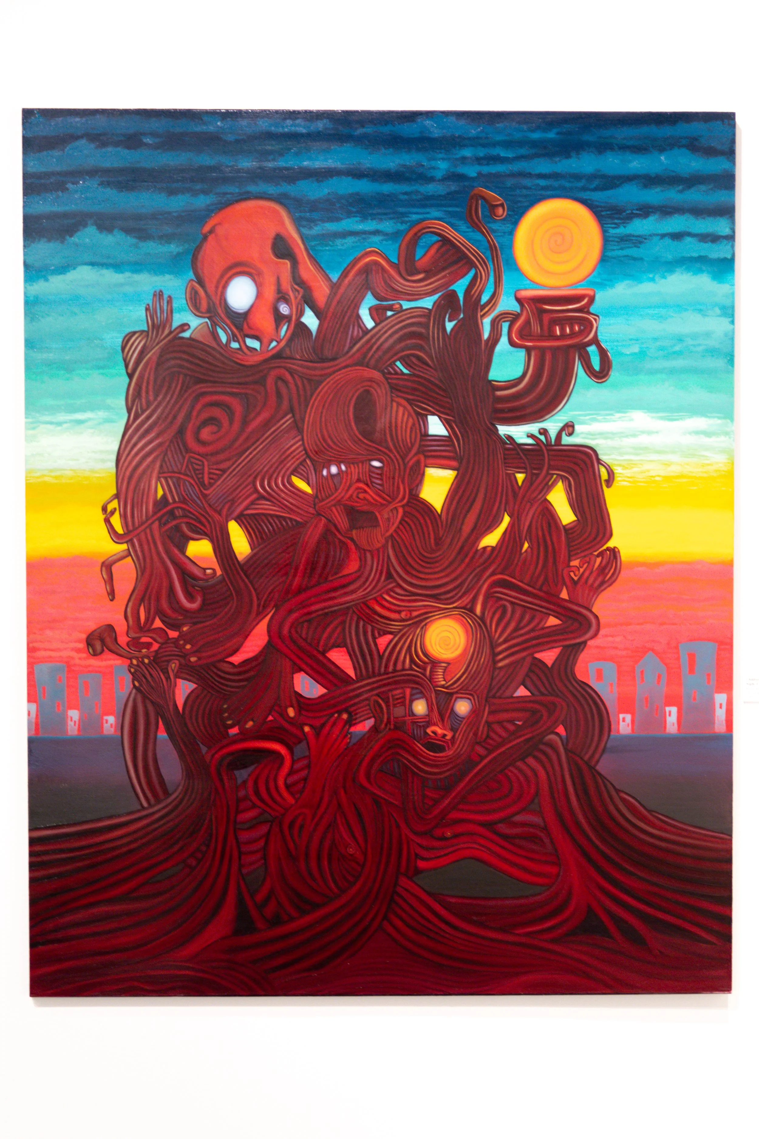 “I never took my art practice very seriously growing up. … I started using drugs at a very early age.” In his late teens, after an eviction from the last house his family shared, he says he got his first apartment and “sobered up for the first time in my life.” During that sober period, he drew constantly, and he names influences ranging from a Salvador Dali book to his brother’s comics and street-art graffiti.