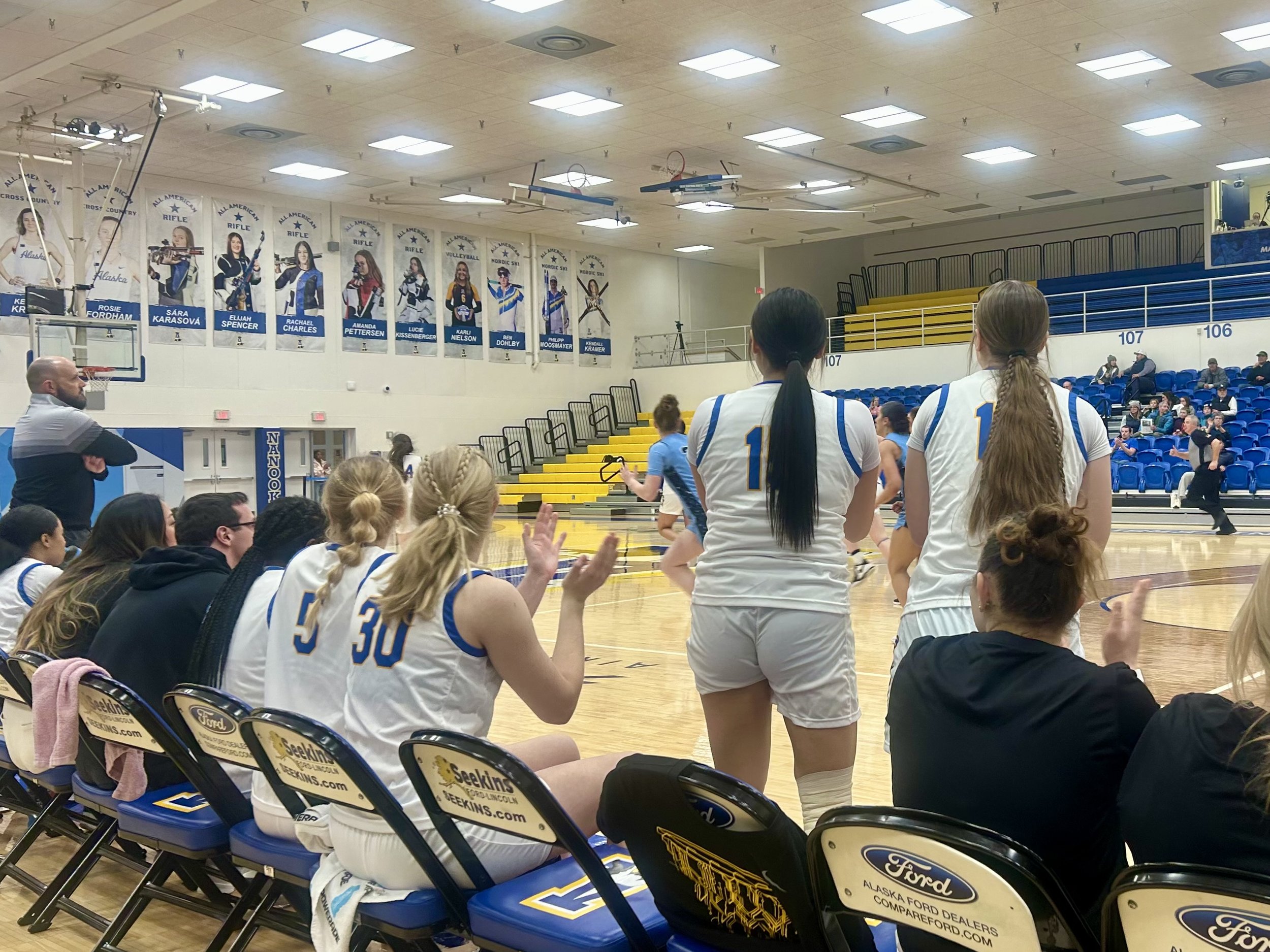 Alaska started strong against Simon Fraser in a tight back-and-forth first quarter with five lead changes. Senior Tamai Mancuso drilled two three-pointers and had an offensive rebound good for a putback. The game was tied 10-10 near the end of the quarter until two Nanook turnovers led to fast break layups for the SFU Red Leafs, with the Nanooks now down five to start the second.
